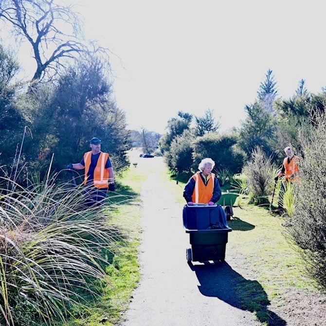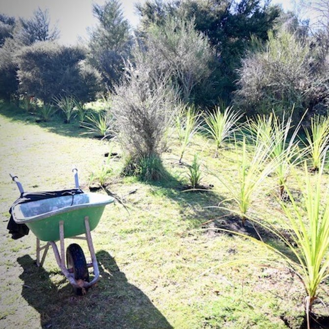 Regular working bees are held to help with the planting of natives, the removal of exotic species and pest plants, and maintaining the reserves so they enhance Kinloch. Working beside them in the background, the Kinloch Community Bring Back the Native Birds Group coordinates traplines and trapping on the reserves to remove imported pests, ensuring our flora and fauna are protected.